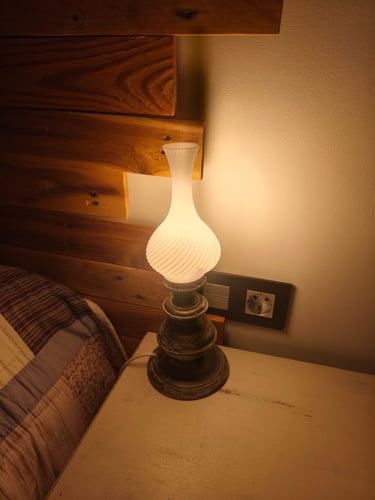 Por eso, diseñamos y fabricamos tulipas a medida para todo tipo de lámparas, pudiendo fabricar dos unidades idénticas para conservar, o incluso mejorar, la sintonía original del dormitorio.
